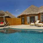 Les 15 Water Pool Villas sont similaires aux Water Villas mais proposent sur la terrasse une piscine à débordement de 6,6 x 3,6 mètres, un canapé confortable, chaises longues, salle à manger extérieure en teck, accès direct à la plage. Système de son surround Bose, bibliothèque de DVD et de CD. Station iPod avec iPod programmé. Service d’un majordome dédié.